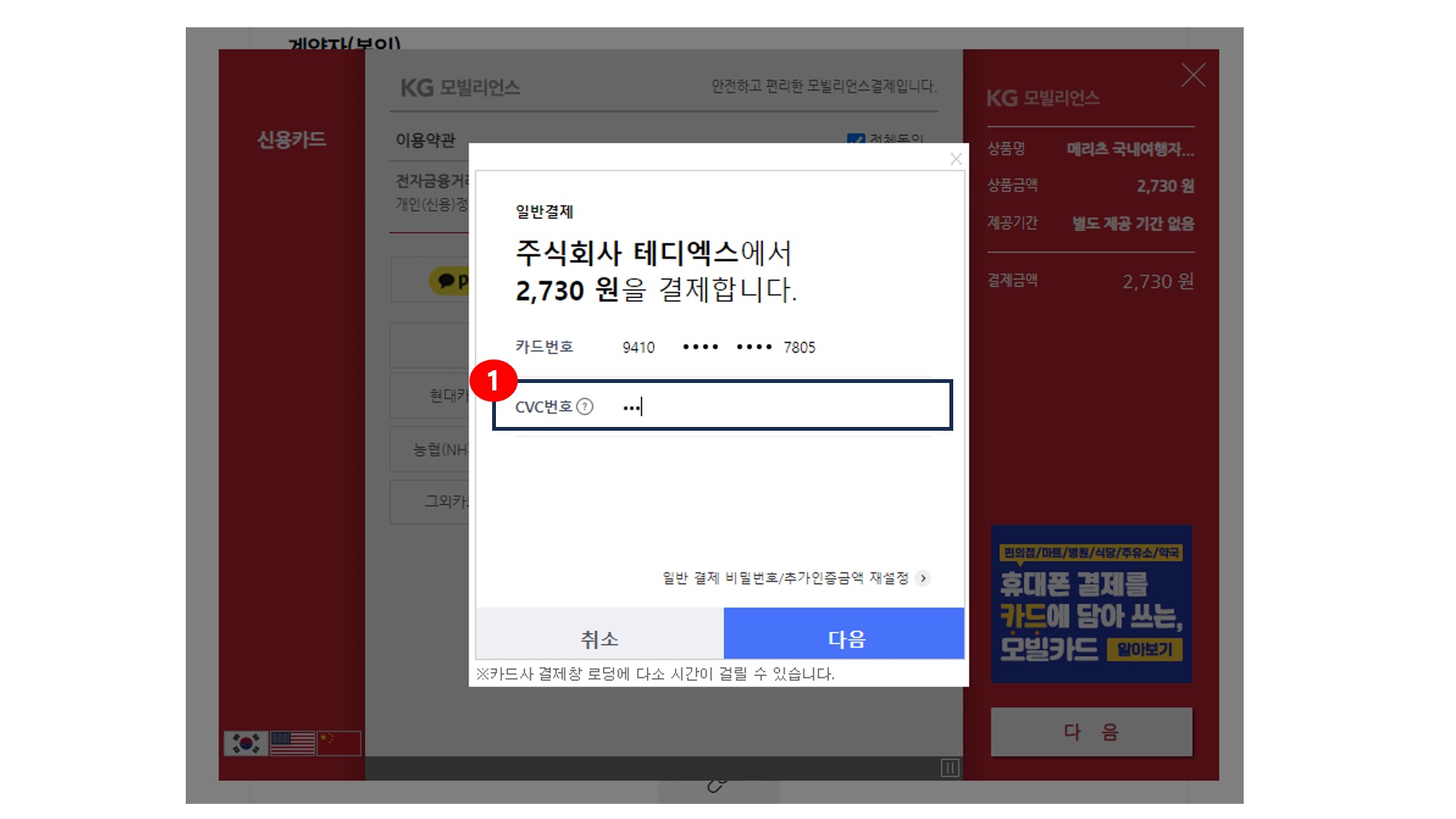 신용카드외에도 가상계좌, 네이버페이, 카카오페이, 토스페이, 휴대폰 결제 가능합니다.