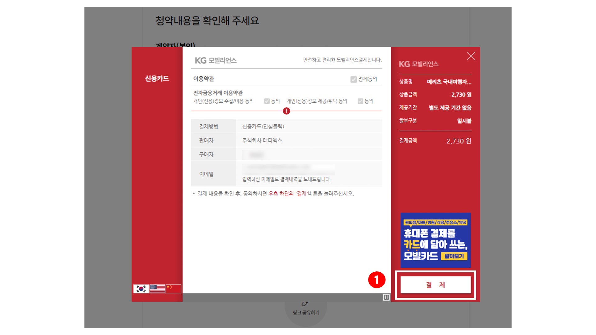 결제 완료 화면 및 이메일 발송 확인 하시면 되십니다.