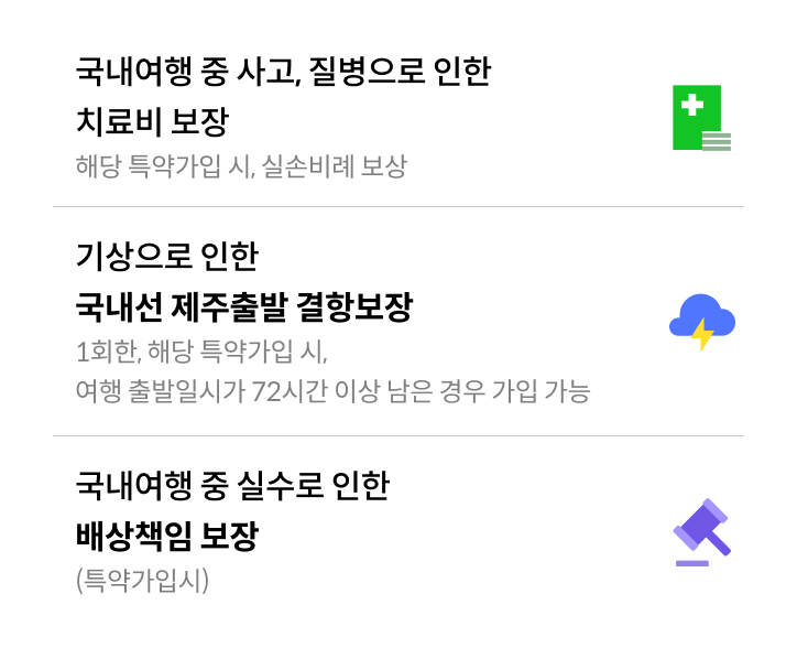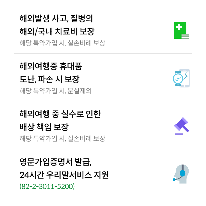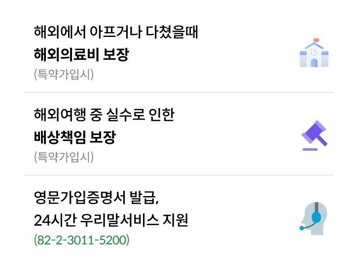 - 여행하는 국가에 따라 보험료가 다르지 않습니다.